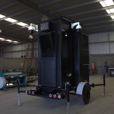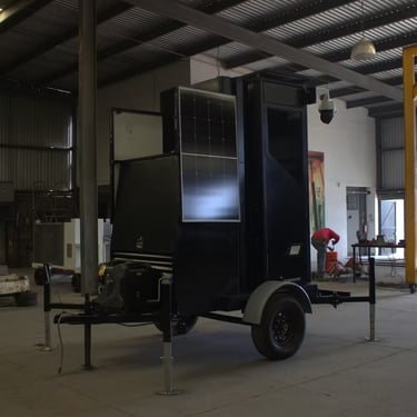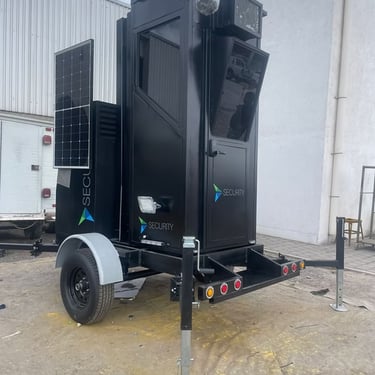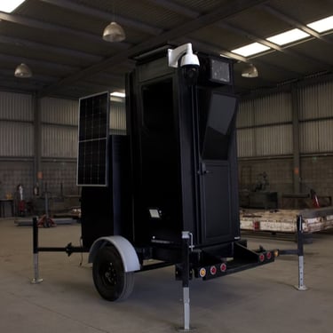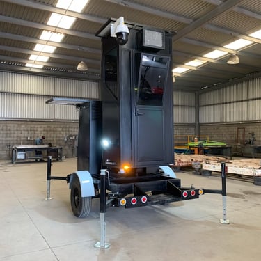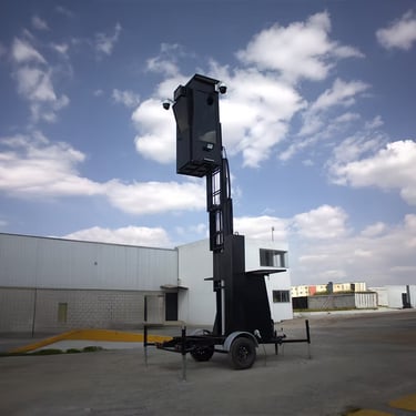 Caseta remolcable para posición oficial y elevador de cámaras con conexión a centros de vigilancia y control.