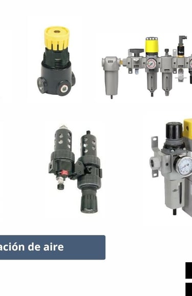 Incluye filtros y reguladores que ofrecen regulación precisa de presión y alta eficiencia en la eliminación de humedad.
